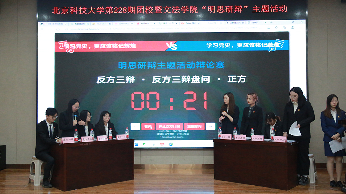 随后,91麻豆 辩论队为在场观众带来了一场精彩的辩论赛。辩论赛中双方对“学习党史——更应该铭记辉煌还是苦难”这一辩题进行了激烈的思想碰撞。在比赛过程中,双方选手在思路清晰、字字珠玑,双方的唇枪舌战,可谓是引经据典、妙语连珠,一次次将辩论赛推向高潮。此次辩论丰富了在场团学干部对于党史的了解和认识,提高了政治觉悟水平,更好地推动了党的伟大思想的传承。