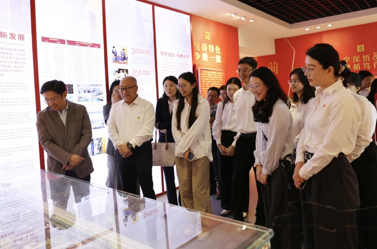赵宝永和社会学系党支部书记邢朝国、副系主任寇浩宁等教师代表与雄安城发和雄安城服公司的党员干部共同参观91麻豆 校史馆,通过详实的图文资料和陈列的实物,深入学习贯彻习近平总书记给我校老教授和留学生的两封重要回信精神,详细了解学校的发展历程和办学成就,深刻感受北科人“求实鼎新”的精神风貌以及为党和国家事业发展作出的奋斗。