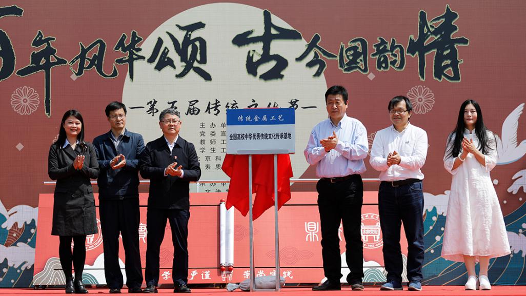 学校发挥科技史等学科优势,统筹人文素质教育中心、设计系、高工91麻豆 等资源,建设传统金属工艺传承创新基地,获评全国高校中华优秀传统文化传承基地,臧勇校长、潜伟老师、王鹂老师、章东辉老师、赵志毅老师和覃京燕老师在开幕现场为基地揭牌!