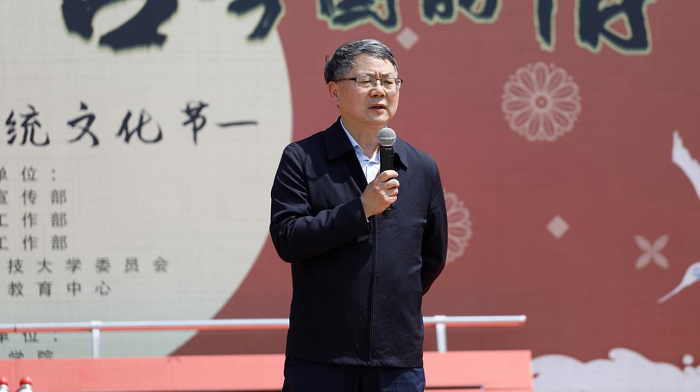 学校党委常委、副校长臧勇致开幕词。他指出:要将优秀传统文化与现代红色文化相结合对青年学生进行教育和引导。本届传统文化节开幕式以“百年风华颂·古今国韵情”为主题,就是将庆祝建党百年党史文化教育和优秀传统文化教育相结合的产物。他强调,要通过这次传统文化节的举办,使大家进一步理解建党百年来所形成的红色文化、红色精神;同时也是对于传统文化的现代发扬,要让更多青年学子领会学习传统文化、热爱传统文化,与此同时更加爱党、爱国。
