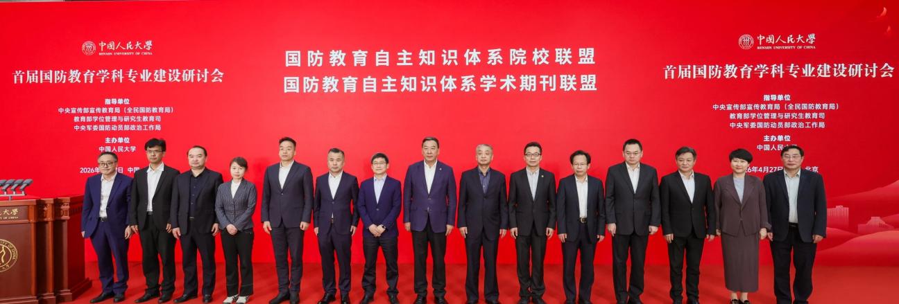 2026年4月27日上午,首届国防教育学科专业建设研讨会暨“国防教育自主自主知识体系院校联盟和学术期刊联盟”成立大会在中国人民大学举办。我校作为院校联盟联合发起单位之一、《思想教育研究》作为学术期刊联盟发起单位之一,党委常委、副校长焦树强,教育研究院院长郭德侠、执行院长金剑苞,《思想教育研究》编辑部主任王亮受邀参会。