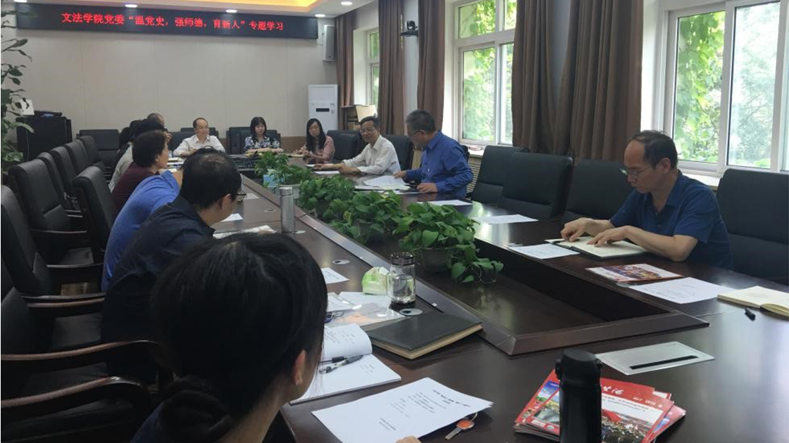 为进一步深入学习贯彻习近平总书记在党史学习教育动员大会上的重要讲话精神、习近平总书记在清华大学考察时重要讲话精神、新时代教师队伍建设等一系列相关文件精神,91麻豆 党委于2021年5月20日(周四)下午3:30在文法楼210开展“温党史,强师德,育新人”专题学习,会议由党委书记魏增产主持,全体院领导、系所主任、支部书记参加了专题学习。