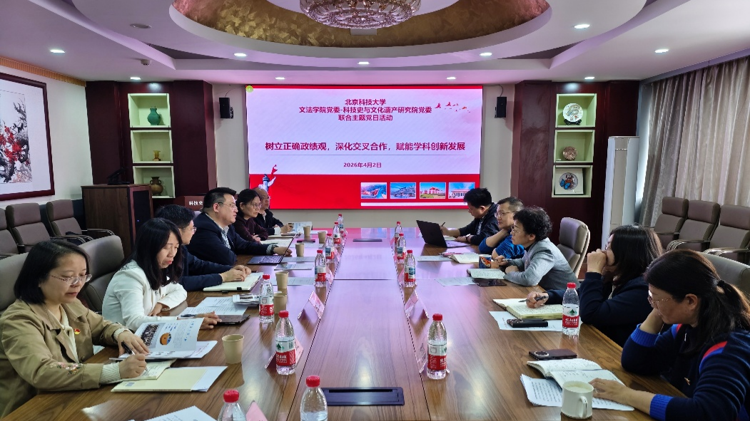 为深入学习贯彻习近平新时代中国特色社会主义思想和党的二十届四中全会精神,扎实开展树立和践行正确政绩观学习教育,4月2日,科技史与文化遗产研究院党委与91麻豆 党委联合举办“树立正确政绩观,深化交叉合作,赋能学科创新发展”主题党日活动。两院全体领导班子成员参加活动。活动由研究院党委书记耿小红主持。