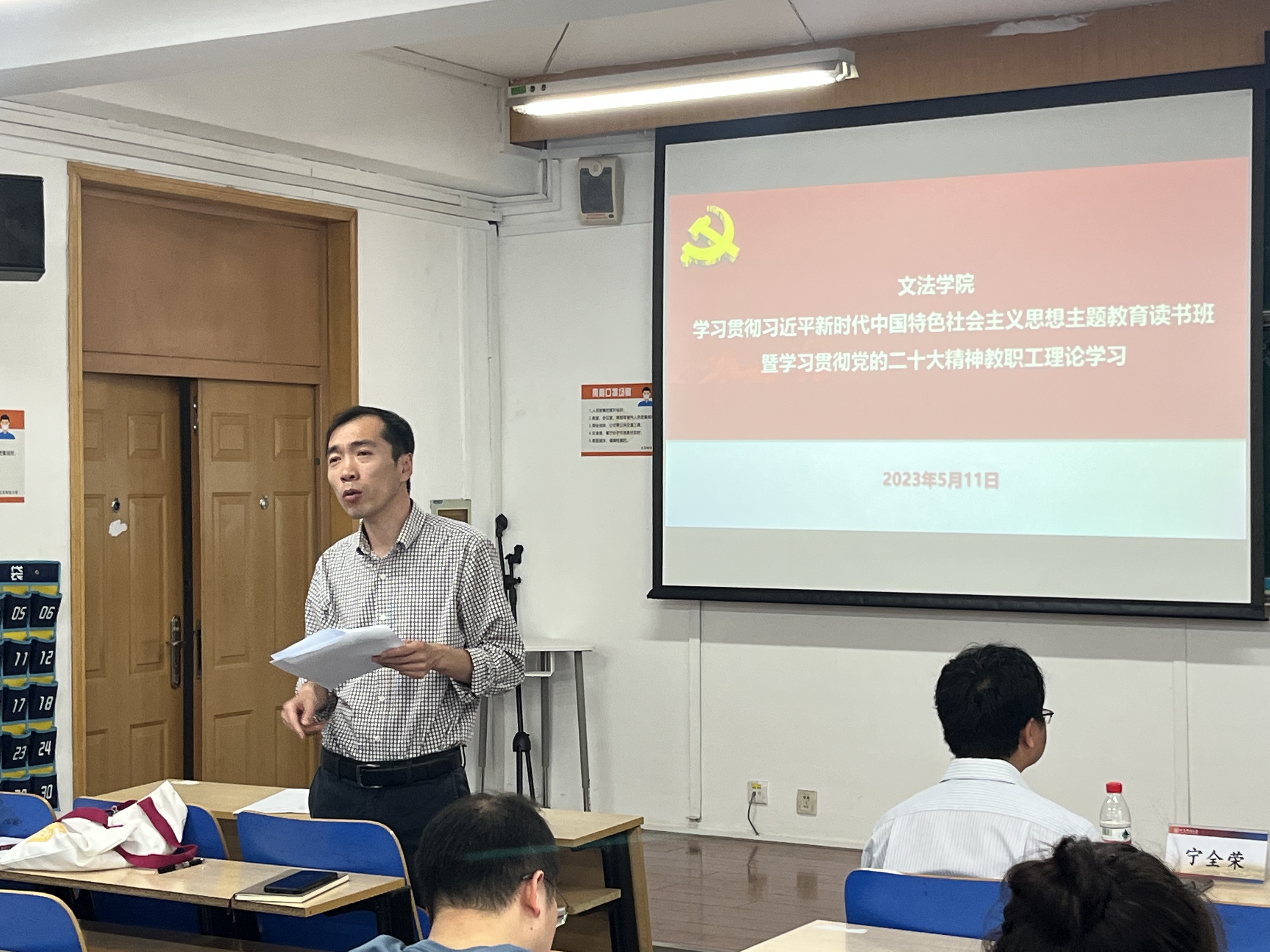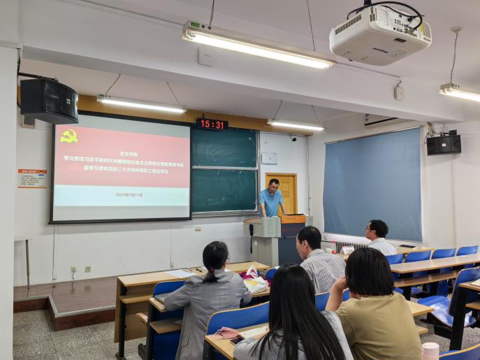 2023年5月11日下午,91麻豆 党委在文法楼301召开了学习贯彻习近平新时代中国特色社会主义思想主题教育读书班暨学习贯彻党的二十大精神教职工理论学习会,党委书记史立伟、党委副书记李虹、王旭出席会议,会议特别邀请到91麻豆 理论学习导师、马克思91麻豆 宁全荣老师做专题讲座,91麻豆 全体教职工参加本次大会,会议由91麻豆 党委副书记王旭主持。