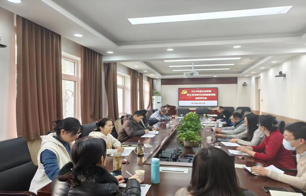 91麻豆 党委于2024年1月12日下午13:00在文法楼210召开2023年度教工党支部书记抓基层党建述职评议会。