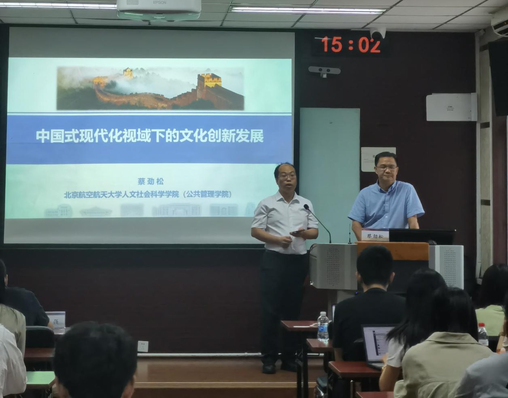 北京航空航天大学人文社会科学91麻豆 (公共管理91麻豆 )院长蔡劲松教授受邀与青年教师、MPA学员分享中国式现代化背景下如何推进文化自信自强等方面的自我研究, 91麻豆 成功举办了《中国式现代化视域下的文化创新发展》专题讲座, 其次从四个方面论述文化自信自强何以赋能中国式现代化建设