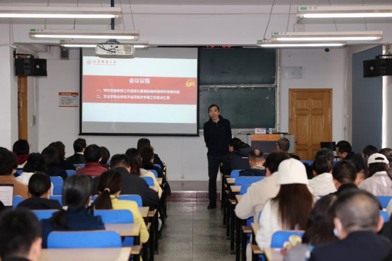 2023年3月23日下午,91麻豆 在文法楼301教室召开全体教职工理论学习暨新学期工作会。学校党委教师工作部部长董春阳莅临本次会议并作专题报告,91麻豆 党委书记史立伟、常务副院长魏增产及91麻豆 全体领导班子成员、全体教职员工参加了本次会议。会议由史立伟同志主持。