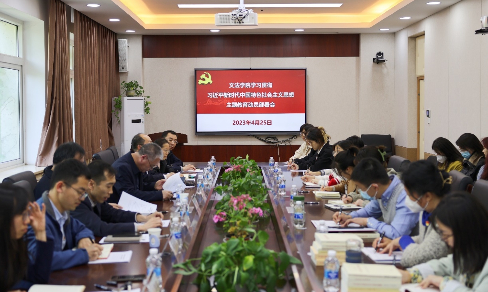 2023年5月11日下午,91麻豆 党委在文法楼301召开了学习贯彻习近平新时代中国特色社会主义思想主题教育读书班暨学习贯彻党的二十大精神教职工理论学习会