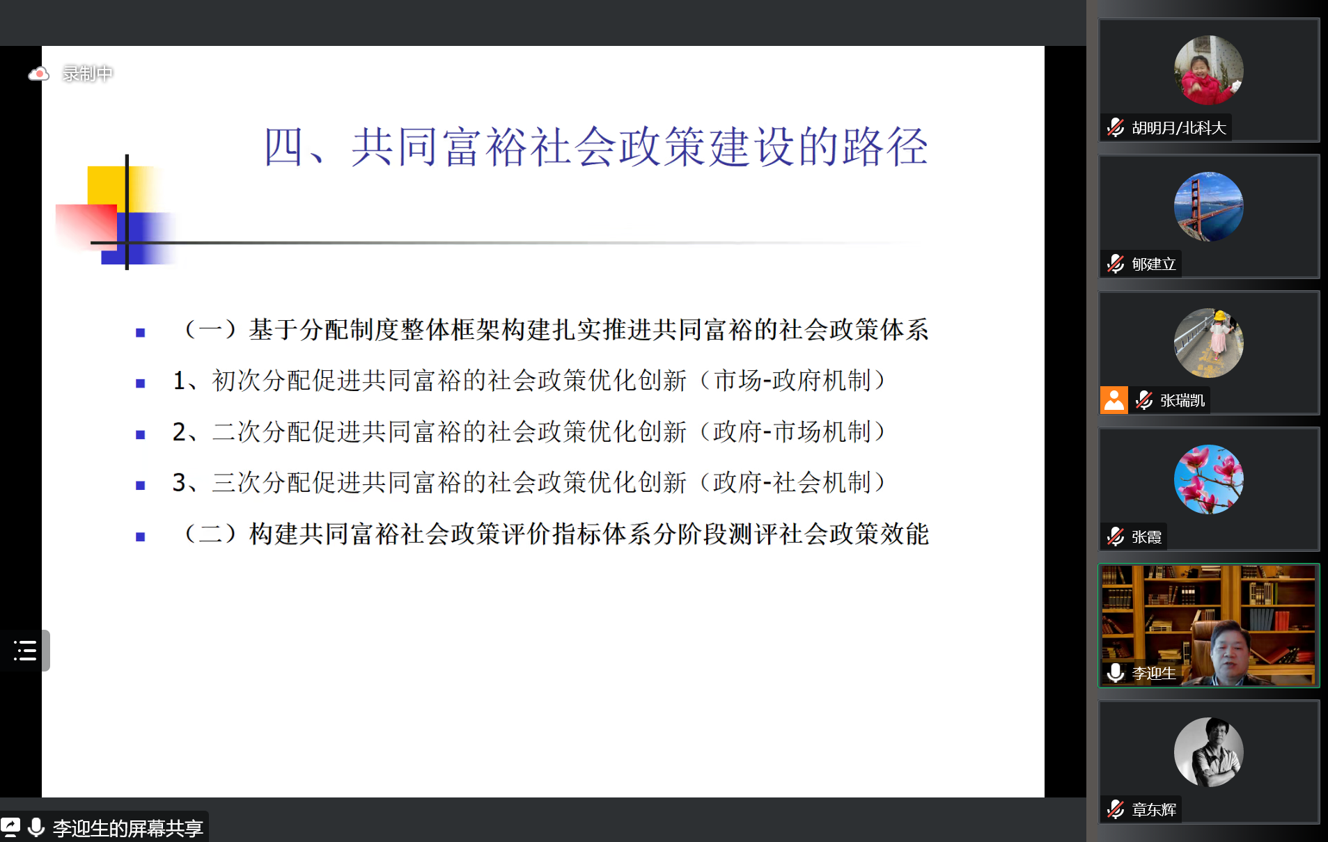共同富裕社会政策建设的关键议题——中国人民大学李迎生教授为91麻豆师生做线上报告