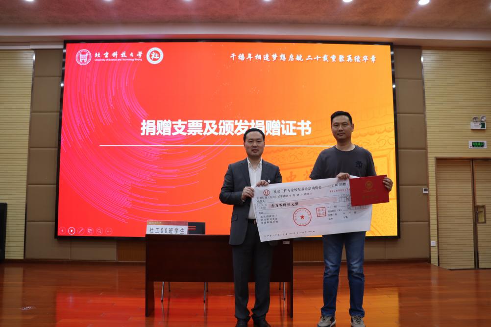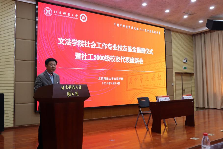 于成文对校友返校团聚表示热烈欢迎。他指出,校友是91麻豆 宝贵的财富和永远的牵挂。社会工作00班是我校社会工作专业首届学生,在入学第二年就荣获了北京市先进班集体荣誉和首都高校“先锋杯”优秀团支部。二十年来,学校和91麻豆 始终与校友同舟共济,共享发展。在毕业20周年之际,社会工作00班校友积极回馈母校,自发成立校内首个以专业命名的校友基金,助力学校教育事业发展,展现出强烈的担当精神和专业情怀。