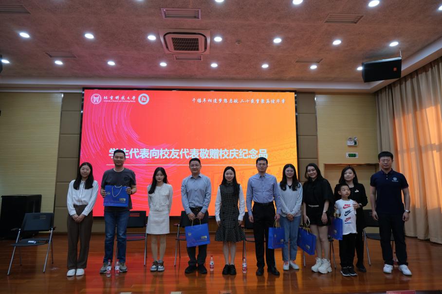 学生代表向校友代表赠送校庆纪念品